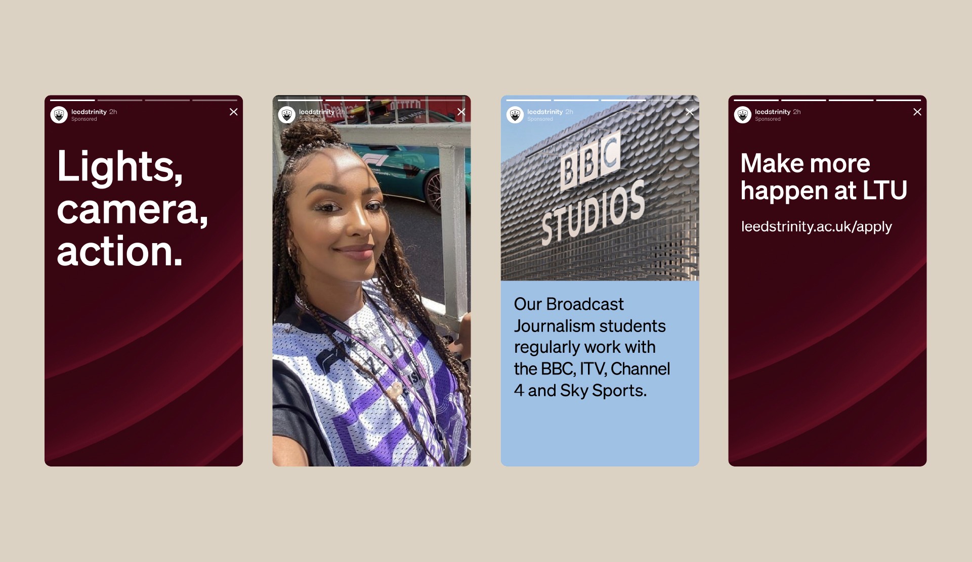 Built on a foundation of social justice values, dignity, compassion and respect, LTU believes in the power of action. They needed a new brand identity to support and raise pioneering spirits. Working with the Hybrid team in Bristol, we created 'The Ship' — a contemporary brand asset inspired by the University logo and guided by three stars, honouring its historical connection to the Barque of Peter and the Church of Christ. Designed to flex across scale, crop, motion and storytelling, it becomes a functional device to communicate every facet of the institution. Alongside this, we introduced a new overarching strategy and launch campaign, Make More Happen — a platform built to flex in colour, tone and behaviour to speak to all audiences, from student recruitment and campus life through to business, partners and key stakeholders.